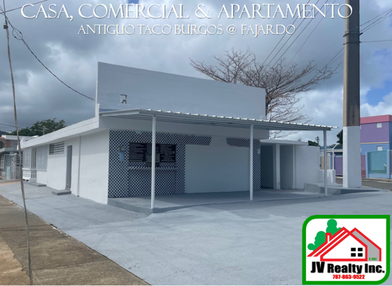 3 propiedades. Casa, apartamento, comercial. ¡Excelente oportunidad! Toda la propiedad arreglada y recién pintada. ¡Lista para mudarse y para comenzar a generar! Casa de 3 habitaciones, 1 baño, sala, laundry, cocina, comedor, balcón, cómodo patio. Incluye puertas de aluminio, puertas de closet en espejo. Apartamento: 2 habitaciones, 1 baño, sala, cocina, área de estacionamiento. Comercial (Antiguo Taco Burgos): SUPER EXPOSICION COMERCIAL. Aproximadamente 260p2 total: Cocina amplia, 2 medios baños (1 para empleados, 1 clientes) y área de recepción acceso exterior e interior; área con techo y espacio amplio abierto. Tiene múltiples espacios para estacionamientos. Preparado para negocio de comida o se puede modificar fácilmente para otros negocios. 2 contadores de luz, 1 de agua. Zonificación C2 (comercial). Total 448m2 de lote. Total p2: 4000 aprox. Para mas información JV Realty 787-863-9522.