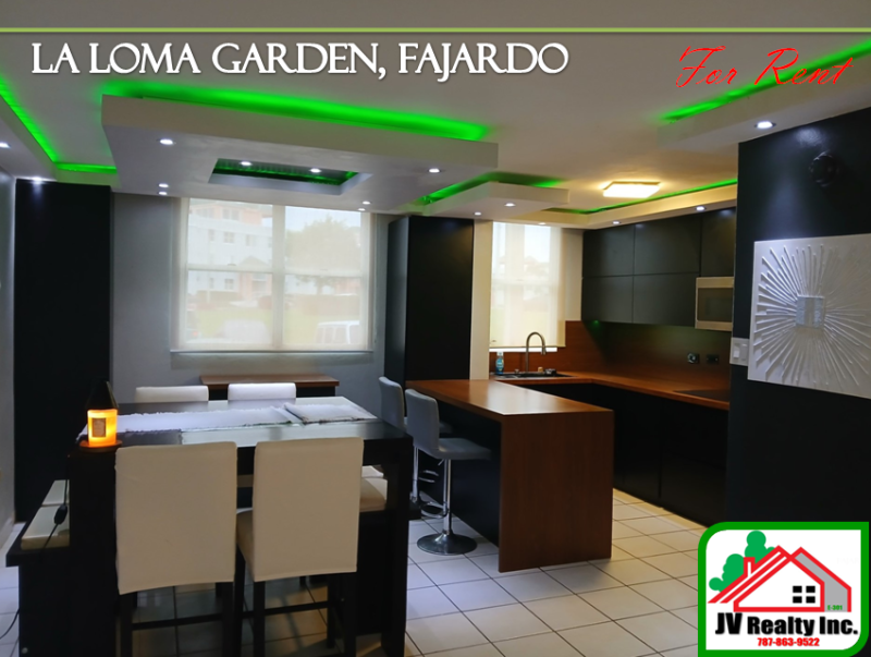 MODERN GARDEN APARTMENT (NO STAIRS) WITH 3 BEDROOMS AND 2 BATHROOMS, LIVING ROOM, DINING ROOM, KITCHEN, LAUNDRY, BALCONY, WALK-IN CLOSET. INCLUDES: REFRIGERATOR, STOVE, WASHER & DRYER COMBO, 3 A/C, 1 HEATER, 1 BEDROOM SET, SOFA, DINING ROOM, FASCIAS, BATTERY BACKUP SYSTEM FOR LIGHT AND 2 PARKING SPACES. BALCONY HAS VIEWS OF THE WALKING TRAIL, EL YUNQUE AND THE CITY. LOCATED IN THE MOST CENTRAL CONDOMINIUM IN FAJARDO: MINUTES FROM THE SHOPPING CENTER, MAIN ROAD, EL YUNQUE FOREST, 7 MINUTES FROM THE LUQUILLO BEACHES, AND MUCH MORE. Controlled-access condominium with 24-hour security, pools, courts, and a walking trail with beautiful views. Deposit, ID, proof of income, and credit score information are required. For more information JV Realty 787-863-9522