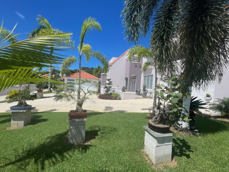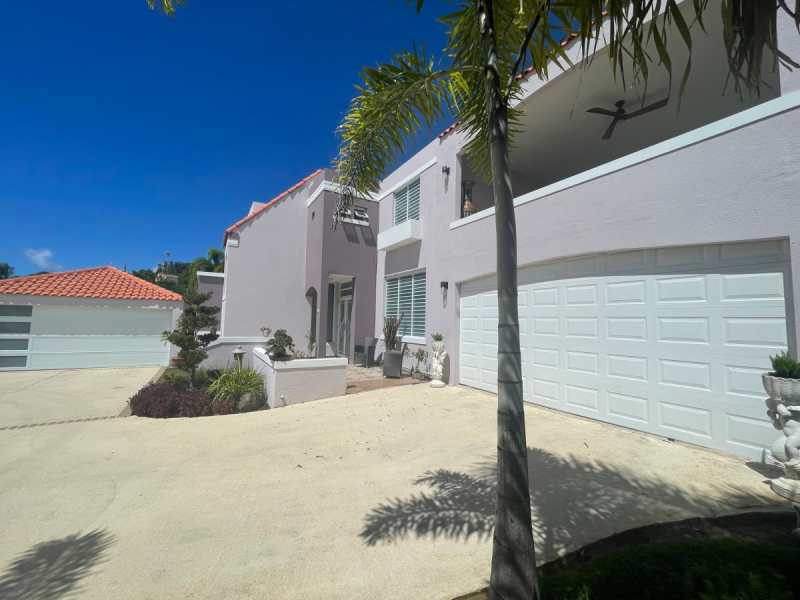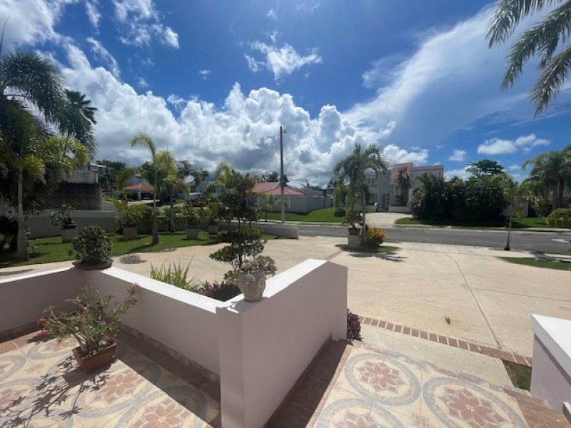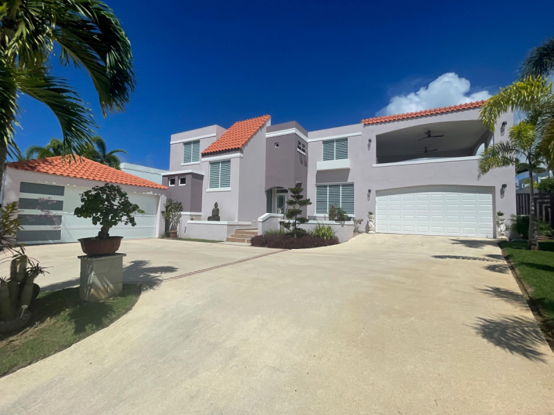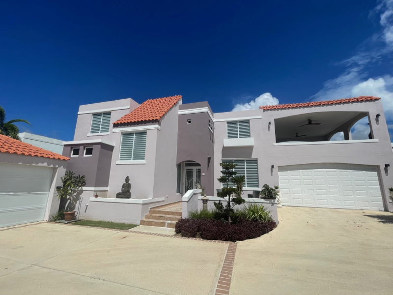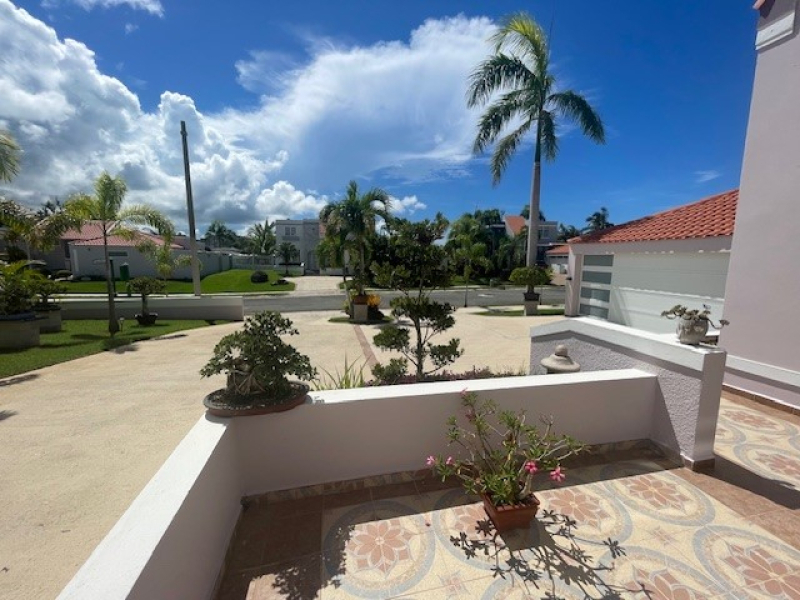 Majestic remodeled corner residence with 4 bedrooms, 3.5 bathrooms, new kitchen with beautiful PVC cabinets and quartz countertops, living room, family room, dining room, breakfast nook, multipurpose area (office/living room), walk-in closet in master bedroom, laundry, 2 garages with doors for 4 vehicles, studio apartment with 1 full bathroom or as a large warehouse, spectacular terrace with beautiful views and ventilation. Beautiful gardens surrounding the residence, ready to move in and freshly painted. Includes: refrigerator, stove, 7 a/c, heater, 6 modern fascias that decorate the 9' high ceilings. Measurements: approx. 3,600 sq. ft. and 1,082 sm of land. Located in a super central community with controlled access, 24 hour security, swimming pool, clubhouse, playground, sports courts, gym; 5 minutes from Luquillo beach, 7 minutes from Kiosks and Balneario Beach, 35 minutes from the airport. Monthly HOA $165. For more information JV Realty 787-863-9522